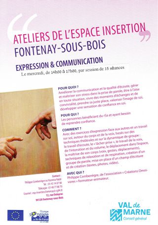 Avec des exercices d'expression face aux autres et un travail sur soi, autour du corps et de la voix, basés sur des techniques théâtrales et sur la dynamique de groupe : le travail d'écoute, le "lâcher prise", le travail de la voix, de l'intonation et du volume, le déplacement dans l'espace, la maîtrise de son corps (voix, gestes, déplacements), techniques de relaxation et de respiration, création d'un groupe de parole, mise en place d'un champ d'écriture et de création (textes, photos, vidéo).